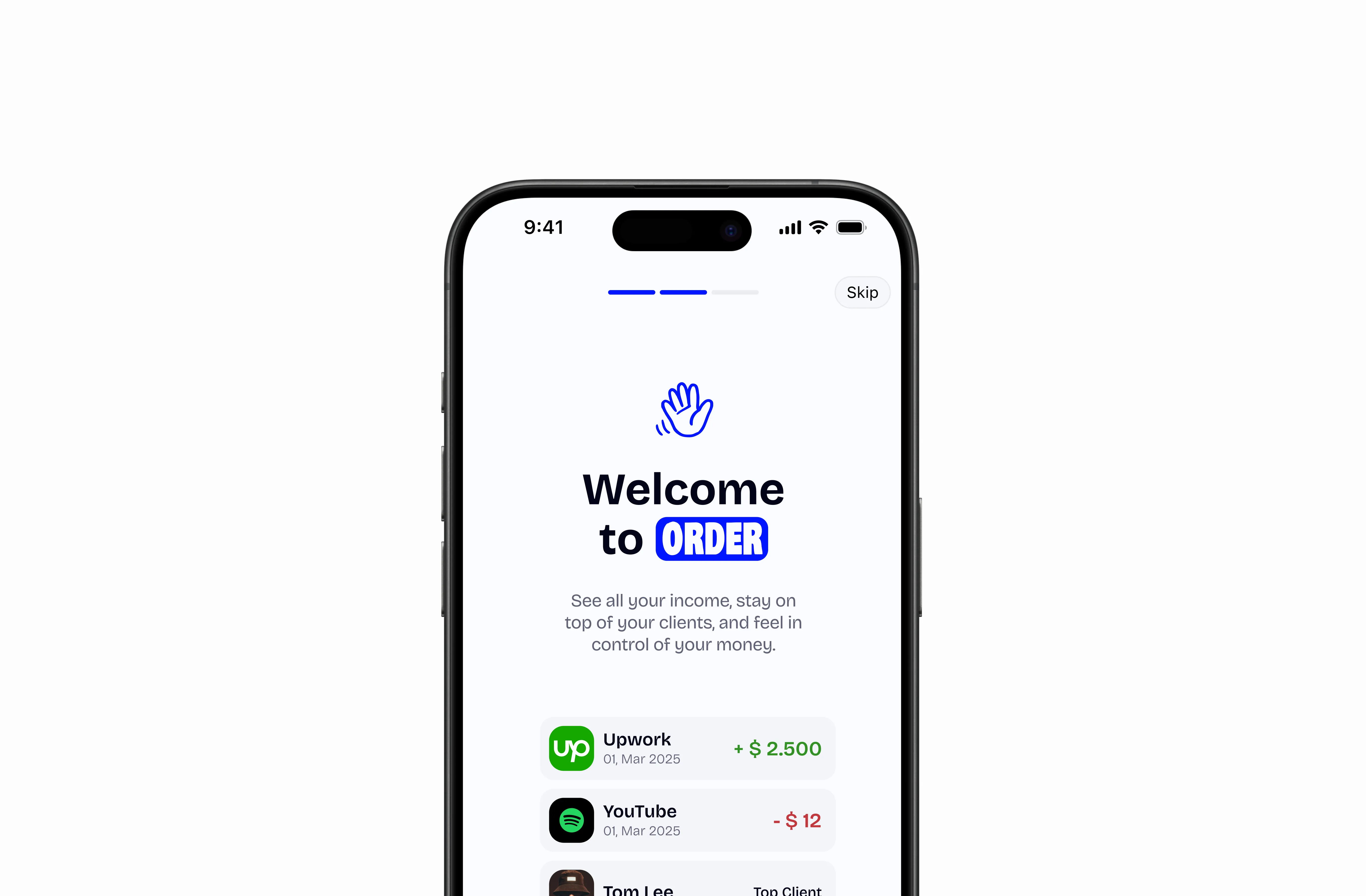 Order is a finance management app designed to make money tracking straightforward, intuitive, and accessible for anyone looking to organize their finances. Instead of overwhelming users with complex dashboards or rigid systems, the experience focuses on clarity: understanding where money comes from, where it goes, and how each movement shapes the overall balance. With a structured interface, clear UX patterns, and a predictable flow, managing finances becomes simpler and easier to maintain.
